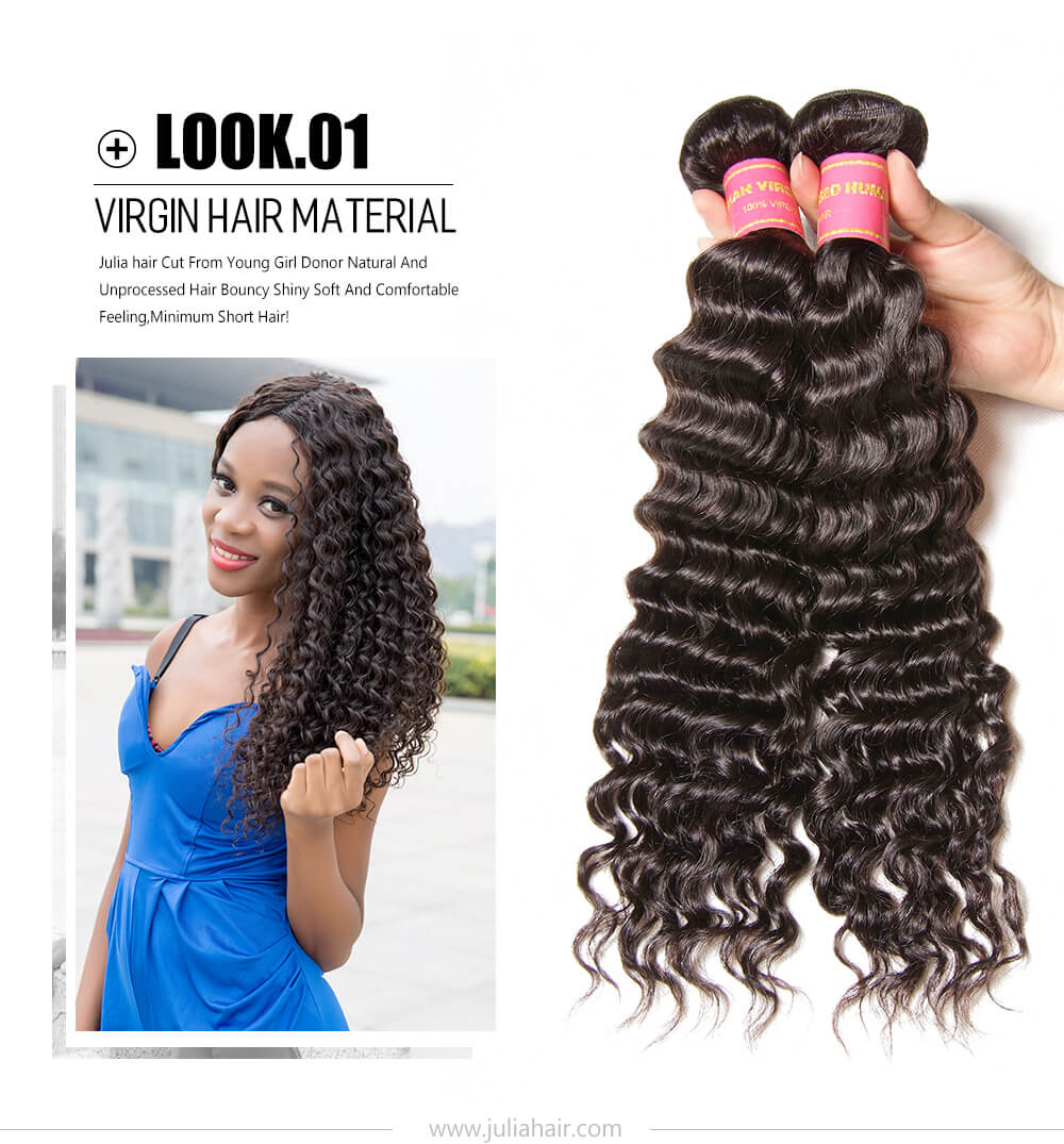 Julia Best Virgin Remy Deep Wave Indian Hair 3 Bundles Human Hair Weave